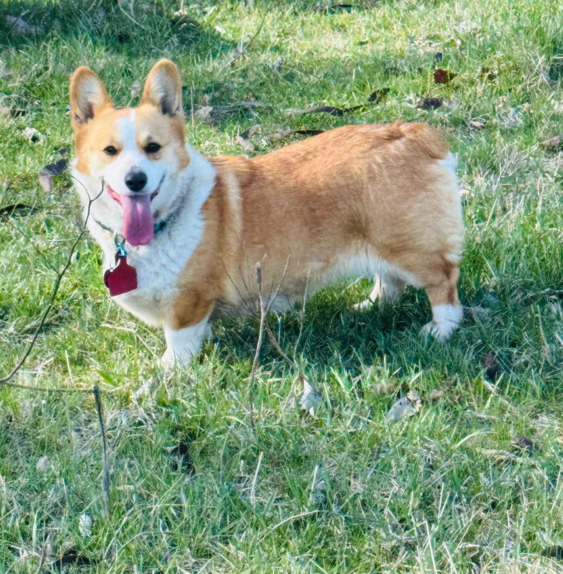 Honey is a 3-year-old CKC-registered Brindle American Corgi and the newest addition to our family! With her incredibly sweet personality, she’s quickly become a fan favorite here. Both of her parents were genetically tested, and she is triple clear. Honey weighs around 25 lbs.